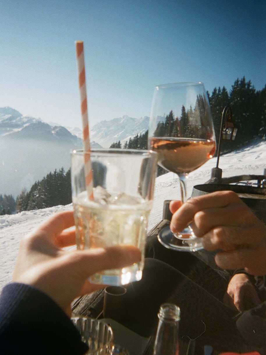 Diese Leute sind vor Ort: Freund:innen (die aussehen, als wären sie direkt von einer Vernissage in einer hippen Berliner Galerie eingeflogen) und Verliebte. Und natürlich Schneesportbegeisterte.