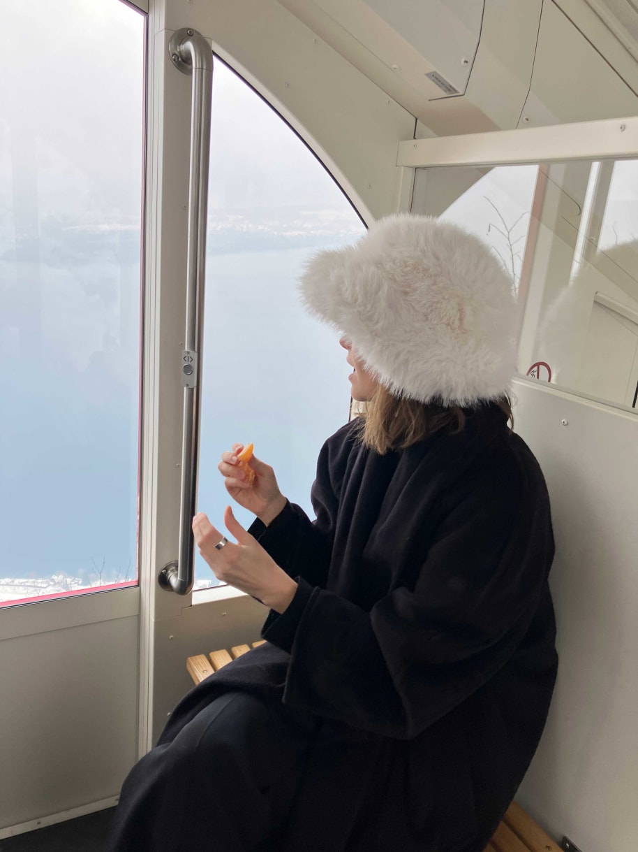 Mein Lieblingsort im Hotel: Unser Hotelzimmer – ich hätte den ganzen Tag dort verbringen können. Ich habe nicht nur das bequeme Bett genossen, sondern auch die schöne Aussicht auf die verschneiten Berge und den Kamin, der das Zimmer gemütlich und warm hielt.