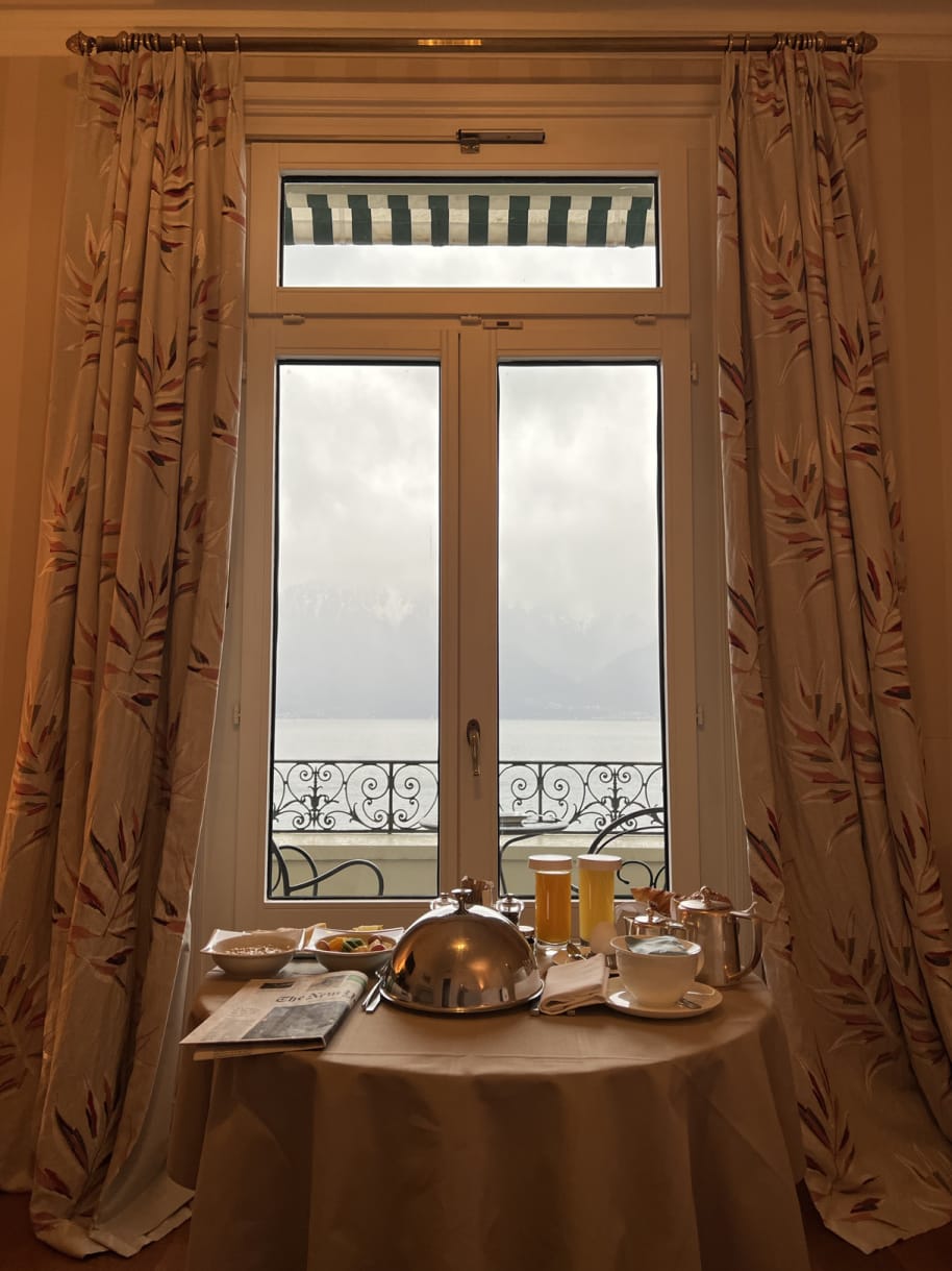 Mein Lieblingsort im Hotel: Da gab es gleich mehrere: Das Hammam-Dampfbad mit regenbogenfarbenen Sternenhimmel-Lämpchen, die in andere Welten entführen. Und mein Zimmer mit Blick auf den Genfersee (vom Bett, den Sesseln und dem Balkon aus – fantastique). Und die cozy Cheminée-Ecken in der Lobby.