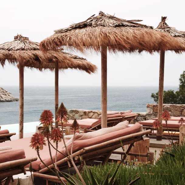 Willkommen in der Relaxzone! Auch wenn Mykonos mittlerweile von der Partycrowd geflutet wurde, gibt es Oasen der Ruhe und genau dazu zählt das "The Wild" an der Südwestküste der Insel. Mit viel Gespür für die Schönheit der felsigen Landschaft hat Familie Varveris hier ihre Designexpertise einfliessen lassen. Lokale Materialien, viel Holz und polierter Beton setzen der Hitze ihre natürliche Kühle entgegen. Über eine Steintreppe gelangt man von dem auf einer Klippe gelegenen Hotel an den Privatstrand und wer einmal im Infinitypool mit Blick übers Meer gebadet hat, will ohnehin nie wieder heim. Dass ihr Einrichtungsstil zum Verlieben ist, wissen die Gastgeber:innen und teilen gern: Von den handgefertigten Lampen bis zur Leinenbettwäsche kann man fast alles auch für die eigenen vier Wände kaufen.