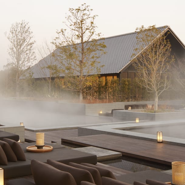 Inmitten der japanischen Ise-Shima-Region liegt das «Amanemu», ein von Ryokans, also traditionellen Gasthäusern inspiriertes Refugium, das sich natürlich in die Hügellandschaft fügt. Umgeben von der Ago-Bucht und stillen Zedernwäldern findet man hier eine Ruhe, die meditativ wirkt. Schwarz gebeizte Holzfassaden, klare Linien, Räume, die nach Tatami und warmer Hinoki-Kiefer duften: Hier wird die japanische Idee von Luxus gelebt.