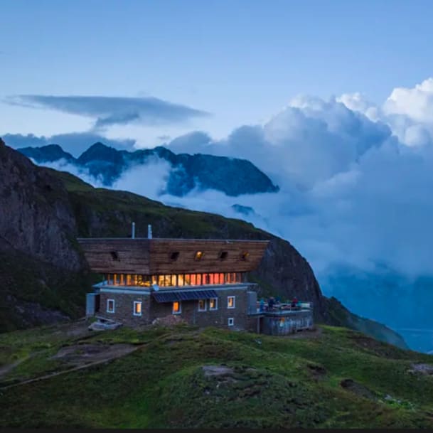 Ein Gebäude wie ein Kristall, der auf 2883 Metern über die Schweiz hinaus glänzt: Die Monte-Rosa-Hütte mit ihrer silbernen Fassade entstand zum 150-Jahre-Jubiläum der Eidgenössischen Technischen Hochschule Zürich. Verschiedene Abteilungen erschufen zusammen eine praktisch energie- autarke Berghütte am Fuss des Monte- Rosa-Massivs. Auch wenn ihre Strahlkraft gross ist – sie gehört zu den meistbesuchten Hütten des Schweizer Alpenclubs (SAC) –, ein Spaziergang ist der Zustieg nicht. Unerfahrenen wird professionelle Begleitung empfohlen, da der Hüttenweg über den Gornergletscher führt. Der Aufwand lohnt sich aber. Oben erwartet einen der Blick auf das von der Abendsonne beschienene Matterhorn, bevor man müde ins Kajütenbett fällt.