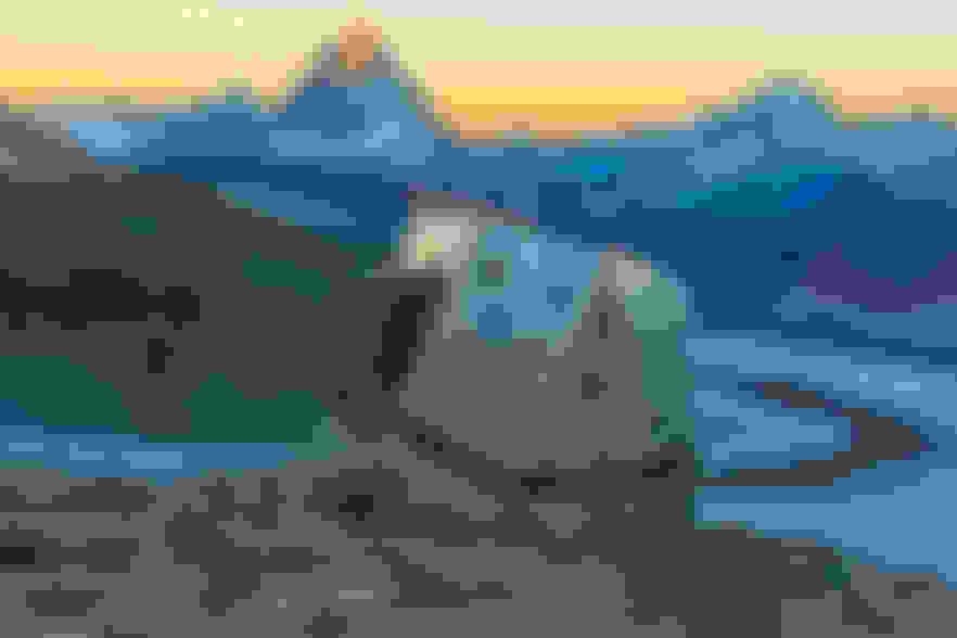 Ein Gebäude wie ein Kristall, der auf 2883 Metern über die Schweiz hinaus glänzt: Die Monte-Rosa-Hütte mit ihrer silbernen Fassade entstand zum 150-Jahre-Jubiläum der Eidgenössischen Technischen Hochschule Zürich. Verschiedene Abteilungen erschufen zusammen eine praktisch energie- autarke Berghütte am Fuss des Monte- Rosa-Massivs. Auch wenn ihre Strahlkraft gross ist – sie gehört zu den meistbesuchten Hütten des Schweizer Alpenclubs (SAC) –, ein Spaziergang ist der Zustieg nicht. Unerfahrenen wird professionelle Begleitung empfohlen, da der Hüttenweg über den Gornergletscher führt. Der Aufwand lohnt sich aber. Oben erwartet einen der Blick auf das von der Abendsonne beschienene Matterhorn, bevor man müde ins Kajütenbett fällt.