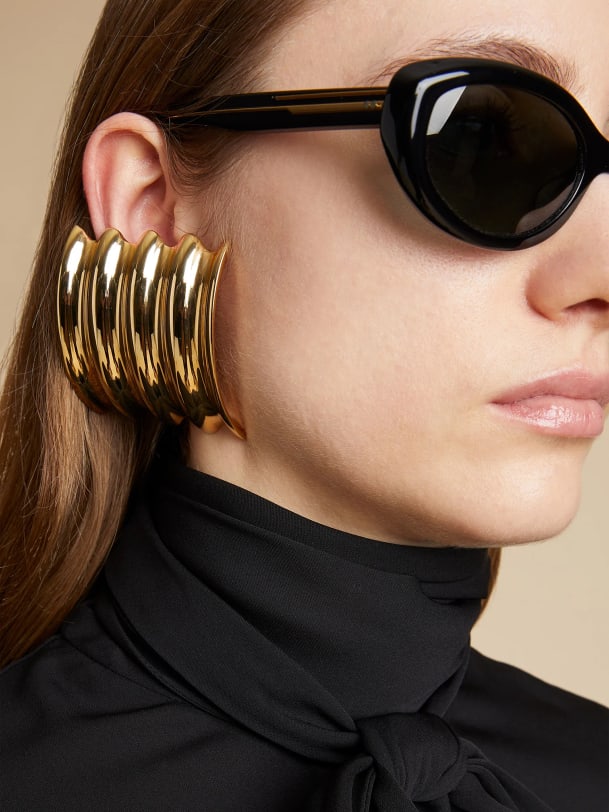 Ich trage selten Schmuck und besitze nur wenige Stücke, die ich dafür umso mehr liebe. Die Ohrringe Julius von Khaite (798 Fr.) würde ich liebend gerne meiner kleinen Kollektion hinzufügen. Das skulpturale, futuristisch anmutende Design würde sich bestens zum oben erwähnten Longsleeve-Tee machen. Wem sie zu extrem ist; es gibt sie auch in einer kleineren Version.