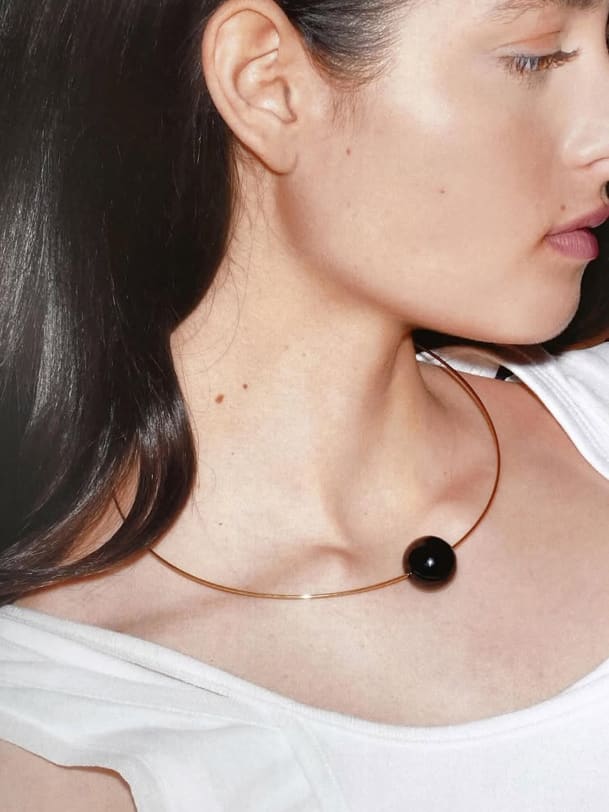 Cooles Design mit Bedeutung: Schwarzer Onyx, aus dem der Anhänger dieses Halsreifs vom New Yorker Label «I Have Vertigo» (486 Fr.) gefertigt ist, gilt in vielen Kulturen als Schutzstein, dem nachgesagt wird, negative Energien abzuwehren. Was muss ein Accessoire mehr können?