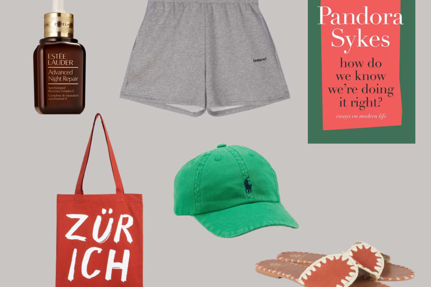 Shorts ca. 65 Fr. von Lamarel; Estée Lauder Advanced Night Repair Serum ca. 57 Fr. bei Perfect Hair; Cap von Polo Ralph Lauren ca. 29 Fr. bei Zalando; Essays "How Do We Know We're Doing It Right?" von Pandora Sykes ca. 27 Fr. bei Ex Libris; Tote Bag ca. 20 Fr. von Modissa-Label Collectif mon Amour; Mules von De Siena ca. 115 Fr. bei Globus