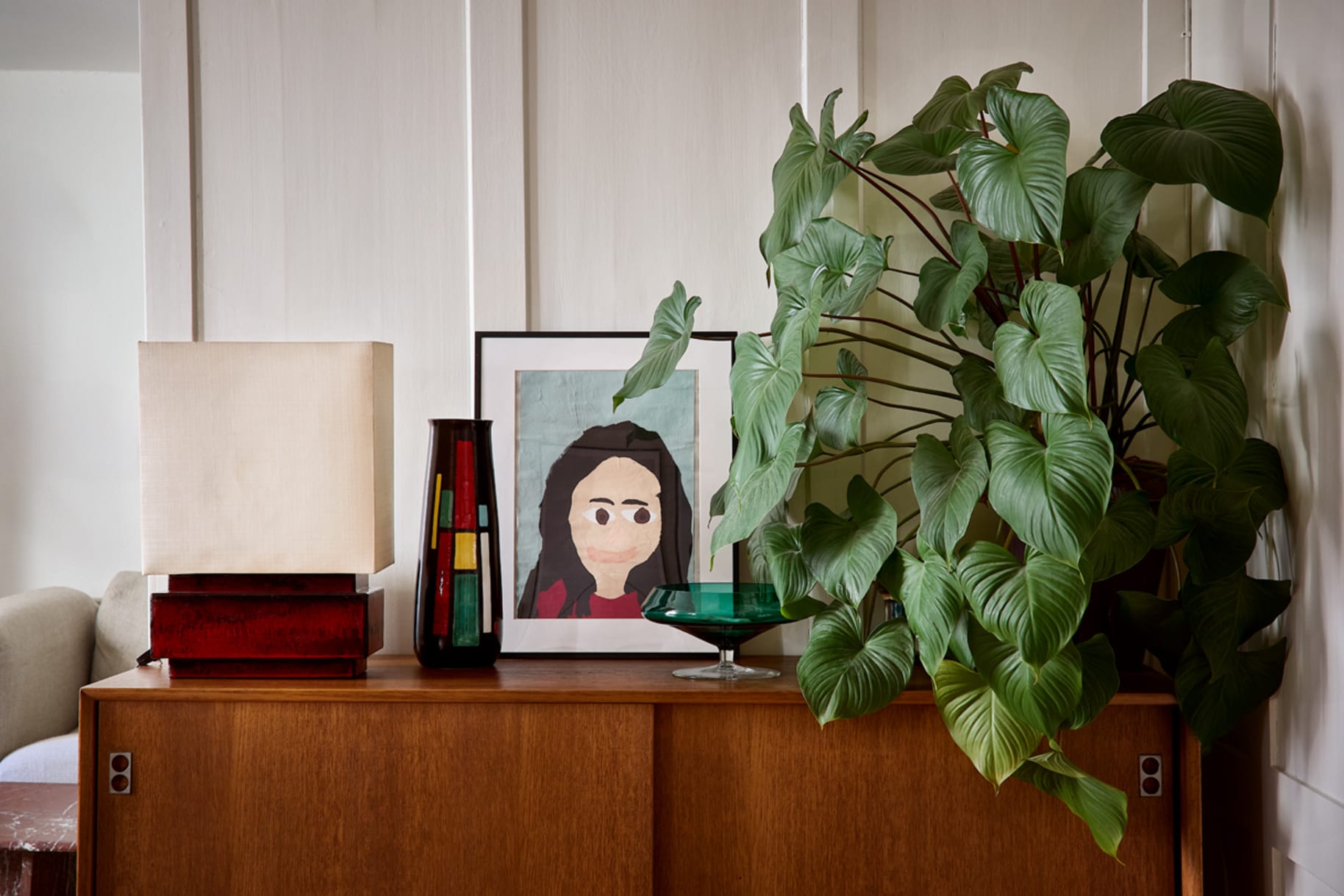 Ich könnte zu jedem Stück eine Geschichte erzählen. Ich liebe das Bild, das einer meiner Söhne von mir gemalt hat, als er acht war. Das Teak-Sideboard in der Stube habe ich mit zwanzig für zehn Franken in einem Brocki gekauft und den Sessel Ekstrem von Varier habe ich auf dem Müll gefunden. Ich habe ihn im Vorbeifahren aus dem Auto gesehen und gebremst. Er war grau und ganz zerfetzt. Ich habe ihn von einem jungen Polsterer neu beziehen lassen.
