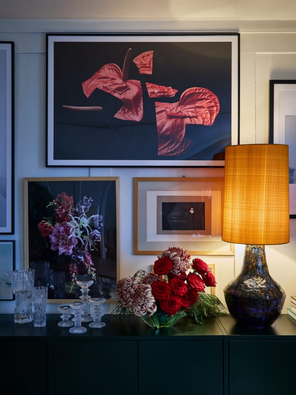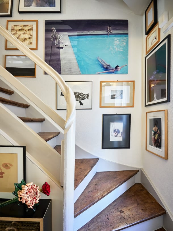 Die Bilder. Jedes Einzelne ist mit einer Erinnerung verbunden. Mal an Fotograf:innen, mit denen ich gearbeitet habe, oder es sind Motive, die ich als Stylistin selbst produziert habe. Meine Kinder sagen immer, ich solle doch endlich aufhören, so viel aufzuhängen.