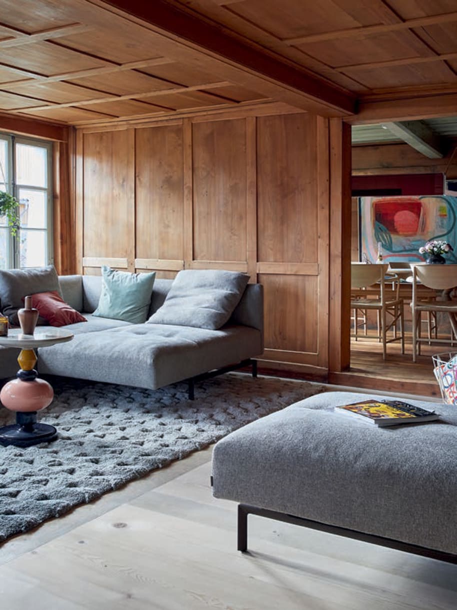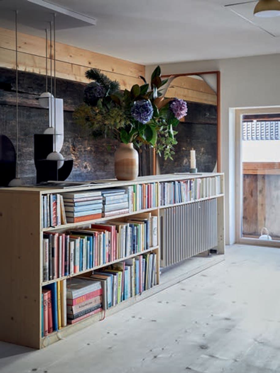 Nach dem Auszug der letzten Bewohner:innen – sie lebten zeitweise mit sieben Kindern in dem Haus – war eine Gesamtsanierung unumgänglich. Sowohl der Architektin als auch der Denkmalpflege war es wichtig, möglichst viele ursprüngliche Elemente beizubehalten. Die rauchschwarzen Holzelemente wurden um solche aus hell geseifter Fichte ergänzt, der Estrich mit historischen Biberschwanzziegeln neu eingedeckt. Das Haus wurde von innen gedämmt, um die Fassade möglichst zu erhalten.