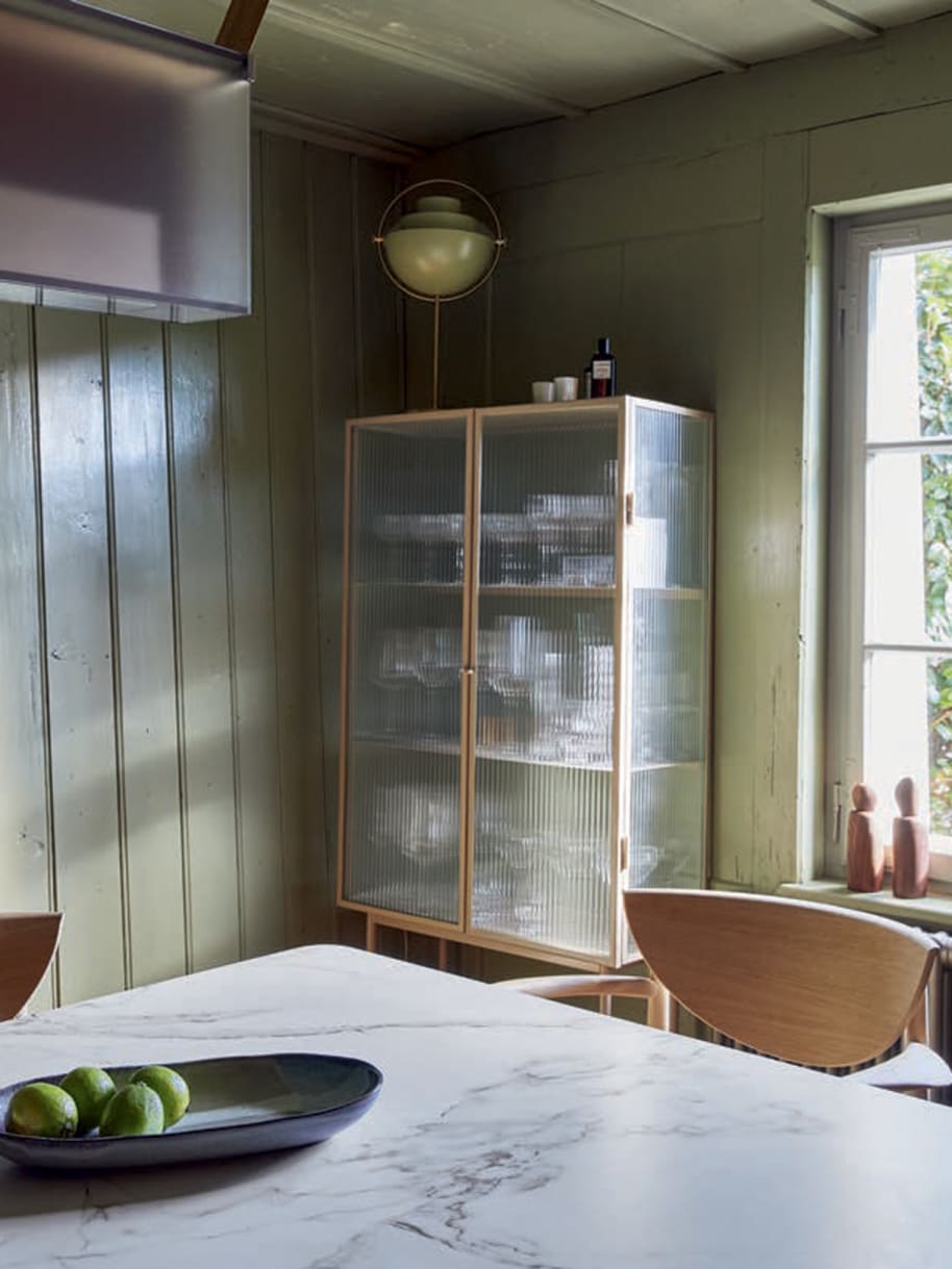 "Gentle Pop" von Amanda Ketterer und die Pendelleuchte Sainte Atelier 06 von Lambert & Fils über dem Esstisch.