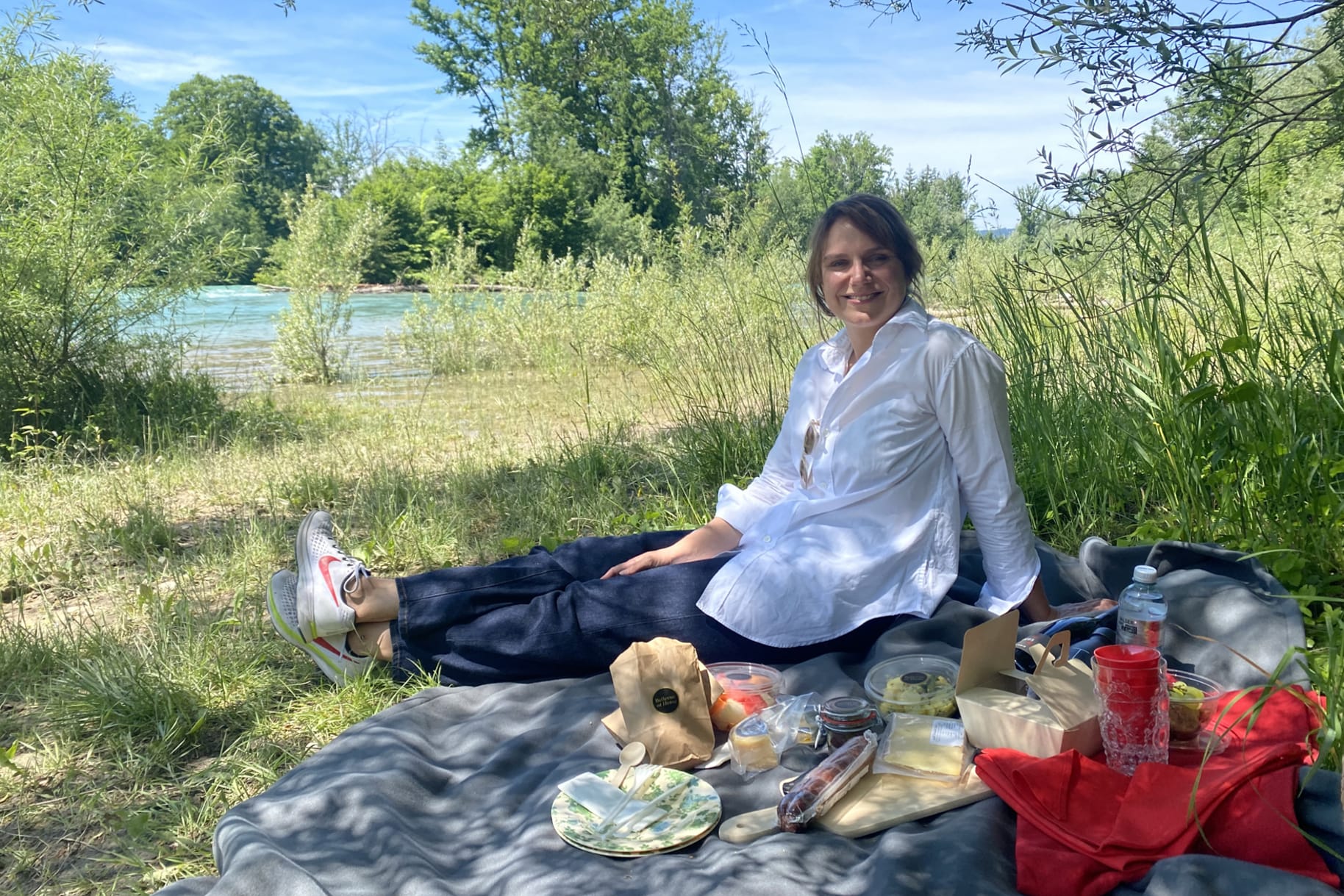 Ich empfehle als Tagesausflug: Die E-Bike-Tour mit den Luxus-Velos vom Berner Kulthersteller Thömus. Das Hotel bietet geführte Bike-Touren an, etwa im Naturpark Gantrisch (als Arrangement bis 31. Oktober). Wir sind einfach losgefahren, der Aare entlang bis nach Rubigen, wo die Flussufer wilder werden, in Auenlandschaften mit Inseln übergehen. Dort haben wir unsere Picknickdecke ausgebreitet. Den Picknickkorb hat uns übrigens "Bellevue"-Koch Gregor Zimmermann persönlich überreicht. Es war köstlich!