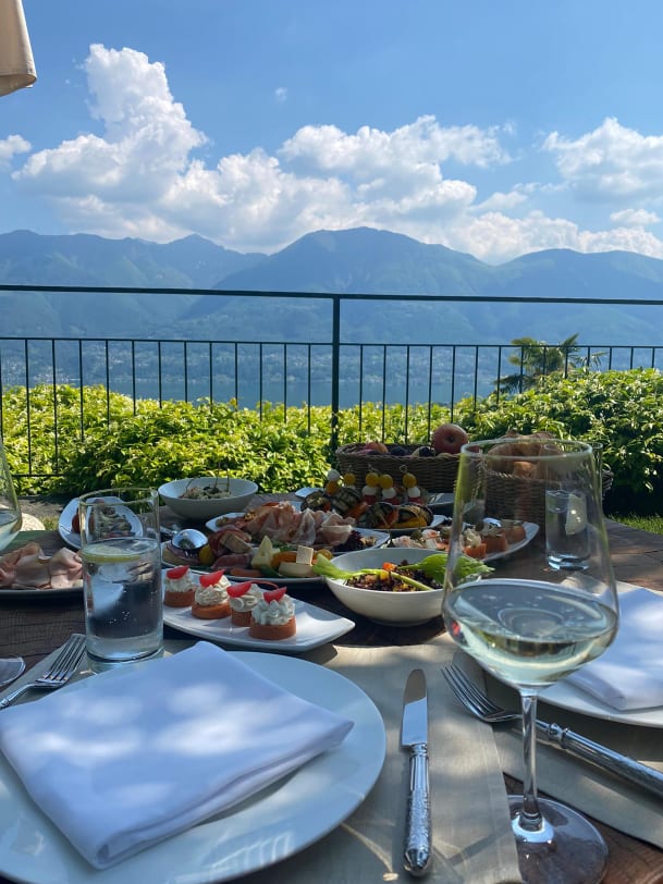 Junior Fashion Editor Mariella Ingrassia hat im 5-Sterne-Boutique-Hotel Villa Orselina unter dem Olivenbaum gepicknickt und den unschlagbaren Panoramablick über Locarno genossen.
