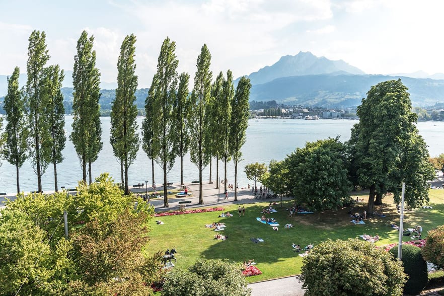 Die Hotellage: Am linken Seeufer direkt am Vierwaldstättersee. Kapellbrücke und Bahnhof sind in fünfzehn Gehminuten erreichbar.