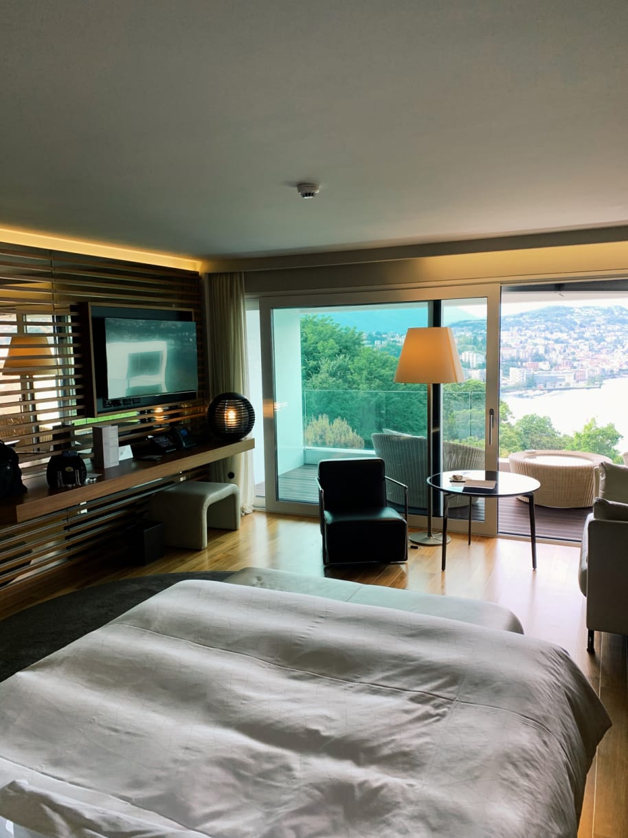 Lage (von 1 bis 10): 8, weil es oben auf dem Hügel liegt und nicht direkt am See liegt. Cool: Das Hotel stellt seinen Gästen Elektro-Smarts oder Elektrovelos zur Verfügung.