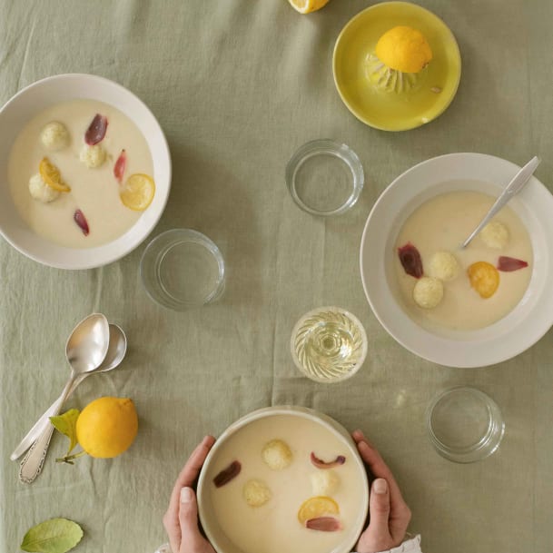 Viele Suppen hat Koch Manu Kohler mit einem kleinen, köstlichen Twist rezeptiert: So haben die Griessklösschen der Zitronensuppe eine überraschende Vanillenote und ich will nie wieder Borschtsch essen ohne ein dickes Stück Butterbrot mit Fleur de sel dazu.