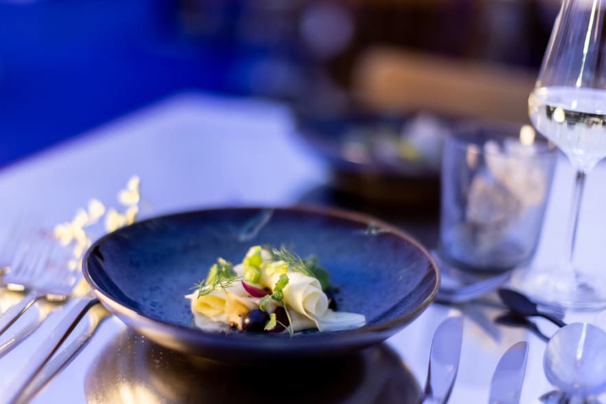 Ist es ein Iglu? Ein Raumschiff? Weder noch – im weissen Dom bei der Hardbrücke findet bis 19. Dezember The5 statt, wo Gästen über vier Stunden fünf Gänge von fünf Top-Köch:innen in fünf Farbenwelten serviert werden. Blau bringt zum Beispiel gebeizte Forelle mit Sellerie, Wacholder-Crunch und Zwiebel-Pickles von Rebecca Clopath aus Graubünden, die mit ihrem Hof Taratsch die Food-Welt um die Finger gewickelt hat. Rot steht für gebratenen Rehbock (oder Randen für Vegis) der slowenischen Starköchin und "Chef's Table"-Protagonistin Ana Roš. Für Hintergrund und Unterhaltung sorgen die Köch:innen selbst, die als Video auf Wände und Decke des Doms projiziert ihre Gerichte vorstellen (und dabei ziemlich lustig mit den Händen gestikulieren). "360°-Gastro-Experience" ist hier kein leeres Versprechen.