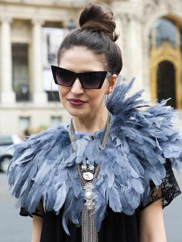 Einer der Streetstyle-Favoriten, gesehen in Paris: Der hohe Dutt trimmt nach wie vor jeden Look auf hip und stylisch – und das mit sehr geringem Aufwand.