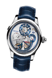 Cartier. "Wir sind in allen uhrmacherischen Disziplinen Meister", sagt Cartier-Präsident Bernard Fornas. "Beim Spiel mit der Zeit wird die Zeit neu erfunden." Neu aus der Manufaktur ist die weissgoldene Taschenuhr mit Grande Complication, die aus 447 Komponenten besteht. Das Meisterwerk verwandelt sich mit Spezialaufhängung in eine Tischuhr und ist limitiert auf fünf Exemplare.