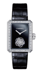 Chanel. Mademoiselle machte ihre Lieblingsblume zum Luxussymbol: Die Kamelie passt perfekt zum kleinen Schwarzen, das Coco Chanel fashionable gemacht hat. Jetzt verbirgt sich hinter der filigranen, diamantbesetzten Blüte des Modells Première, das dem Flaconverschluss des Erfolgsdufts No 5 nachgebildet ist, ein Flying-Tourbillon. Keine Frage, eine kunstvolle Premiere für die Première.