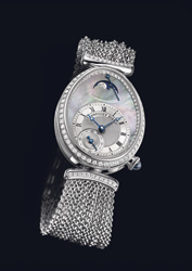Breguet. Seine erste Armbanduhr hat Abraham-Louis Breguet für die Königin von Neapel, Napoleons Schwester Caroline Murat, kreiert. Seit Nicolas G. Hayek die royale Kollektion wiederentdeckte, geniesst die Reine de Naples Kultstatus. Das Bracelet, einst aus Pferdehaaren geflochten, glänzt als Fils d’or neu in der feinen Weissgoldketten-Version.
