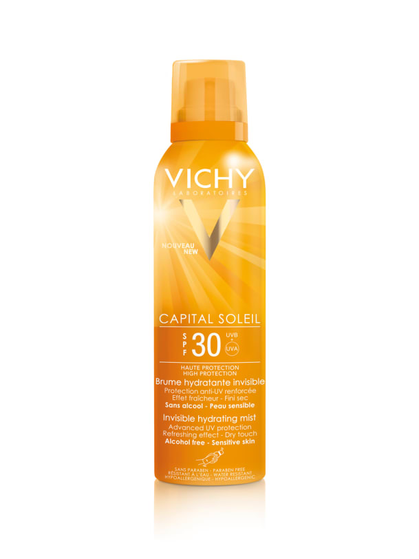 Wie ein Sprühnebel legt sich das transparente Sonnenspray Capital Soleil von Vichy auf die Haut und macht damit das Eincrèmen zum Kinderspiel (zu 200ml für ca. 40 Franken mit LSF 30 und 50).