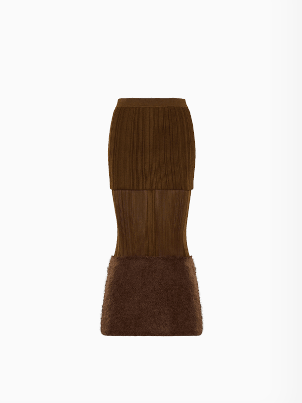 Dieser Rock im Mermaid Look zeigt allen auf dem Weg ins Bergrestaurant, wieviel ihnen Mode bedeutet. Rock aus Mohairwolle mit Seidenfutter 895 Fr. von Moncler