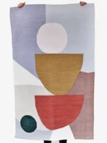 Neben Farben und Formen kommt auch das Haptische nicht zu kurz. Decken aus Rippstoff vermitteln ein kuscheliges Gefühl, Wandteppiche brechen die glatten Oberflächen auf und gewebte Objekte erinnern an heimelige Chalets.