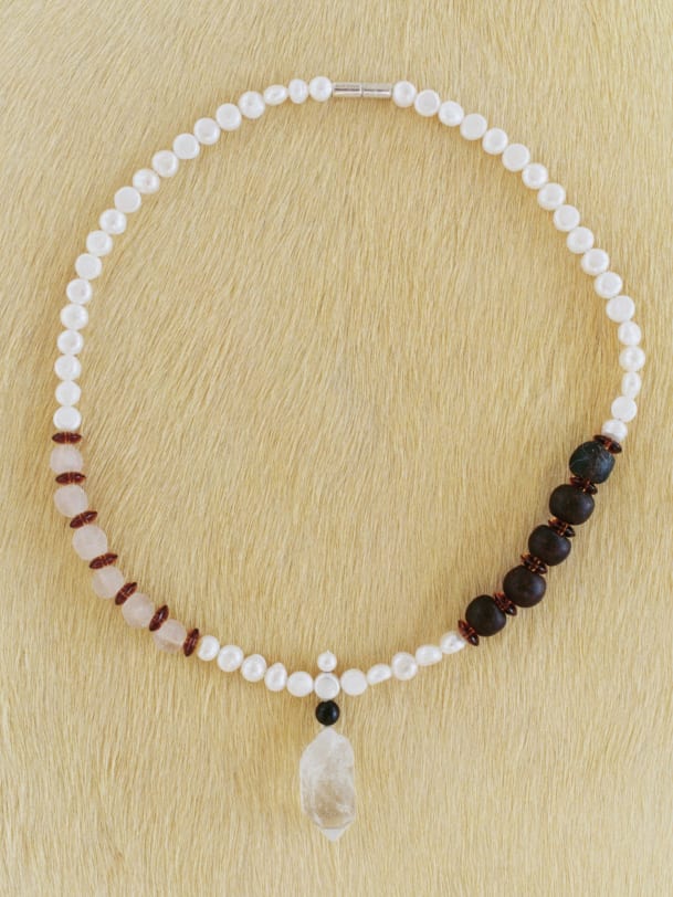 Diese Halskette (Unikat ca. 730 Fr.) aus recycelten Glasperlen und Süsswasserperlen wurde von LVMH-Preis-Gewinnerin Grace Wales Bonner entworfen. Grace, die zu einer der angesagtesten Nachwuchsdesignerinnen zählt, überzeugt mich nicht nur mit umwerfenden Designs: Sie kombiniert Sportswear mit dem britischen Schneiderhandwerk der Savile Row – und das stets mit einer erfrischenden Mischung aus europäischen und afrikanischen Ansätzen. Kürzlich kuratierte sie die Ausstellung "Spirit Movers" für das MoMa und zeigte damit, wie sie auch ausserhalb der Mode Grossartiges schaffen kann.