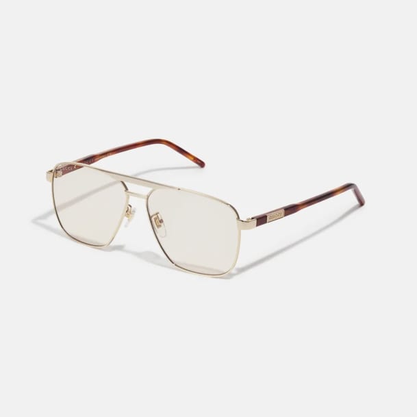 Der goldene Rahmen, die Aviator-Form, der Animal Print! Und: Diese Sonnenbrille von Gucci (395 Fr.) könnte ich gleichermassen gut beim Badminton wie beim Gitarrespielen tragen. What's not to love?