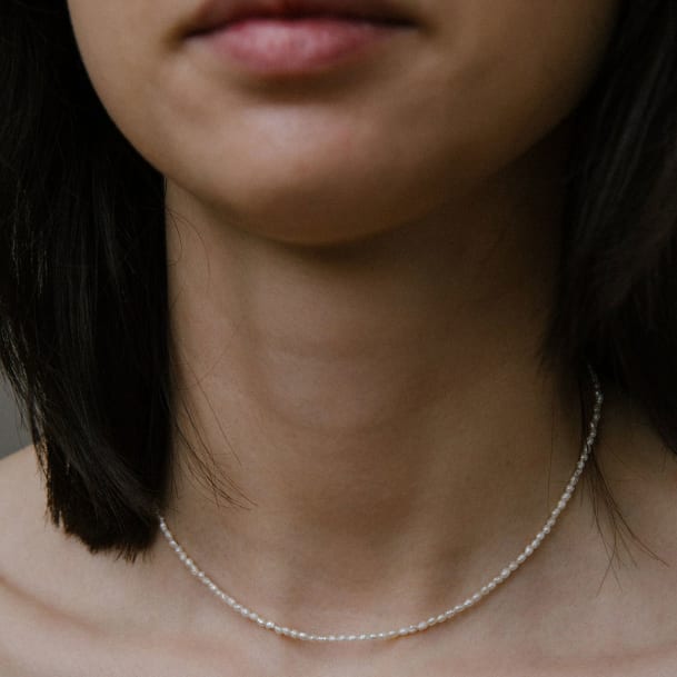 Diese handgemachte Kette aus Reisperlen würde sich schön machen auf salznasser Haut, passend zum Badeanzug von Lido! Da alle Schmuckstücke von Vermeer Studio von Hand und nur auf Bestellung gefertigt werden, muss man sich zwar etwas gedulden, dafür kein schlechtes Konsum-Gewissen haben: Alles nachhaltig! (ab ca. 130 Franken)