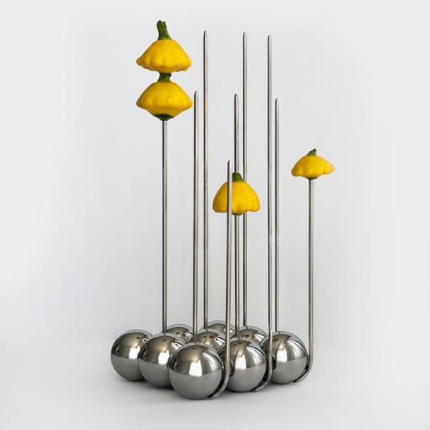 Seit Kurzem lebe ich in einer neuen Wohnung, die mit einer modernen Küche inklusive Kochinsel ausgestattet ist. Ein Paradies für hingebungsvolle Hobbyköch:innen – von denen ich leider keine bin. Ich hasse es, am Herd zu stehen. Das fertige Essen anzurichten wiederum bereitet mir grosse Freude. Eine Dinnereinladung von mir bedeutet also in neun von zehn Fällen: Apéro Riche. Diesen spiesse ich hoffentlich bald auf dem Tischobjekt 102 (Verfügbarkeit und Preis auf Anfrage) des Designstudios AnanasAnanas auf.