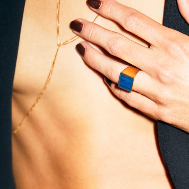 Der Schmuck meiner italienischen Freundin Monica Camperi vereint für mich aufs Beste Sexyness und Klasse. Die Designs sind schlicht schön mit modernem Twist, so wie der wohl coolste Siegelring der Welt, der mit Wunschbuchstabe und in Knallfarbe angefertigt wird (ab ca. 1050 Fr.). Von Goldschmieden in Valenza hergestellt und garantiert aus 18k Gold, muss schon mal mit drei Wochen Wartezeit gerechnet werden. Macht nichts, Vorfreude ist bekanntermassen die schönste Freude.