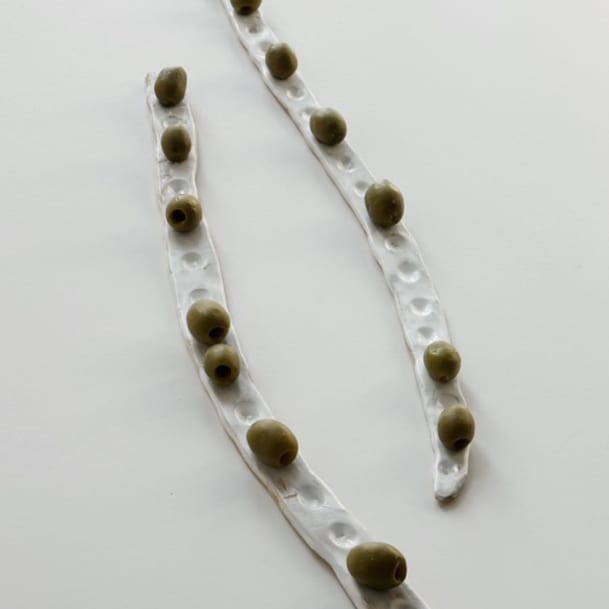 Insgeheim besässe ich ja gerne ihren (Künstlerinnen-)Namen. Aber ich gebe mich auch mehr als zufrieden mit Sere Rivérs’ Arbeit. Die interdisziplinäre Künstlerin ist zu meinem Glück von Stuttgart nach Zürich gezogen, wo ich vor fast einem Jahr auf sie aufmerksam wurde. Seither beobachte ich auf Instagram, wie Sere Rivérs ihre Gefühlswelt auf alltägliche Materialien überträgt und dadurch reduzierte Design-Poesie kreiert – wie zum Beispiel diese schlangenförmigen Keramik-Objekte (ca. 45 Fr.), auf denen Oliven sich nicht lieblos in einer Apéro-Schale stapeln, sondern würdig ganz individuell zur Geltung kommen. Die Keramik-Objekte kann man bei ihr auf Anfrage via Instagram-DM bestellen. Was ich selbstverständlich längst getan habe.