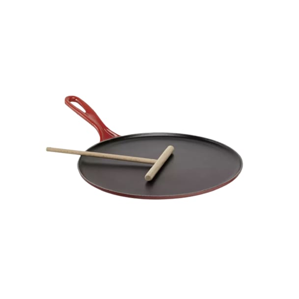 Vor zwei Jahren war ich in der Bretagne in den Ferien und habe mich instant-verliebt in die raue Landschaft, das stürmische Meer, die herzlichen Menschen und natürlich: die Galettes. Fast täglich assen wir die herzhaften Crêpes aus Buchweizen, tranken dazu Cidre und amüsierten uns ein bisschen über die Touristen, die sich eine Crêpes-Pfanne als Souvenir kauften ("haha, was glaubst du, wie oft die dann Crêpes machen daheim, ein- oder zweimal?"). Ja, sie wird unvernünftig selten in Gebrauch sein, ärgerlich viel Platz brauchen, dafür aber das Fernweh nach der Bretagne ein bisschen lindern: Die kirschrote gusseiserne Crêpes-Pfanne von Le Creuset (135 Fr. bei Globus).