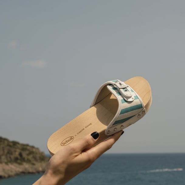 Ich habe zwar noch keine konkreten Ferienpläne (don’t ask!), aber durchaus Fernweh – und ein paar Dinge auf meiner Wishlist, die meiner Sehnsucht womöglich ein bisschen Linderung verschaffen würden. Dr. Scholl hatte sich ganz der Gesundheit der Füsse verschrieben – und eine Firma gegründet, die neben Schuheinlagen, Kompressionsstrümpfen auch den Pescura hervorgebracht hat. Die Holzsandalen hatten ihren grossen Auftritt in den 1960ern – und diesen Sommer: etwa mit dieser Capsule Collection, die in Zusammenarbeit mit dem Luxusresort Daios Cove auf Kreta entstanden ist.