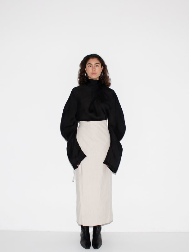 Und noch ein Crush aus der Stadt: das Label Trabelsi. Zugegebenermassen kenne ich die Designerin, was aber wirklich keinen Einfluss auf die Tatsache hat, dass ich mich mit der schwarzen Nour Blouse (240 Fr.) aus Leinen und Seide unter dem Tannenbaum sitzen sehe. Wie cool, wie elegant, wie raffiniert – ich bin hingerissen.