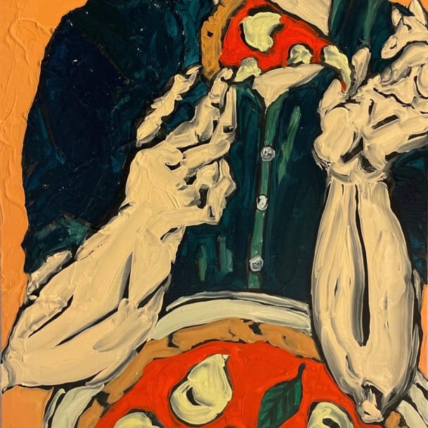 Da gibt es noch was ganz Bezauberndes, was ich mir für mein Zuhause wünsche. Eine Malerei (Preis auf Anfrage) der in Zürich lebenden Malerin und Illustratorin Vroni von Manz. Liebe Vroni, wenn du das hier liest: Ich finde deine schonungslos ehrliche und humorvolle Kunst einfach grossartig! Und irgendwann werde ich eines deiner Kunstwerke neben meinem Esstisch hängen haben. Von da an wird es mir bei keiner Mahlzeit mehr an Gesellschaft fehlen.