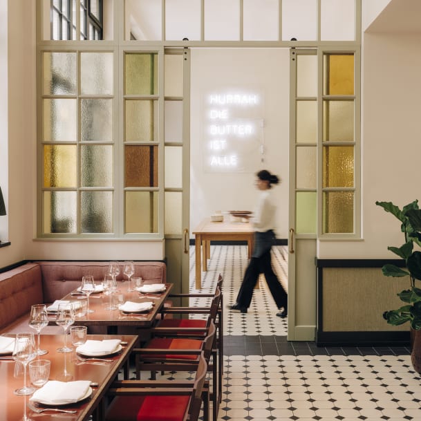 Gerade in Berlin Mitte hat man ja manchmal das Gefühl, die Menschen täten den ganzen Tag nichts anderes, als in den zahlreichen Cafés Matcha Latte zu trinken und Croissants zu knabbern. Wer Ahnung hat, tut dies aber im schönsten Boutiquehotel der Stadt, dem "Château Royal". Der Ableger des weltberühmten Restaurants Grill Royal besticht beim Zmorge durch all das, was die internationale Bohème braucht, um durchzustarten. Britische Scones, wie sie selbst King Charles nicht fluffiger serviert bekommt, pochierte Eier à la minute und, ein gelungener Brückenschlag zur omnipräsenten Kunst im Haus, "Hurrah, die Butter ist alle". Das Neonkunstwerk von Karl Holmqvist prangt hier an der Wand und ist mindestens so toll anzuschauen wie das Treiben in der offenen Küche von Gastrostar Victoria Eliasdóttir.